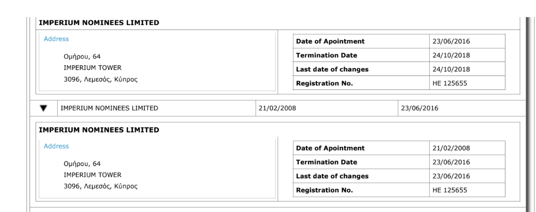 Сам экс-прэзідэнт Кіпру меў не толькі апасродкаванае, але і наўпроставае дачыненне да гэтай схемы. Да 2013 году Нікас Анастасіядыс быў саўладальнікам кампаніі Imperium Services. Яна была сакратаром Profax, у тым ліку тады, калі Юры Чыж знаходзіўся пад санкцыямі ЕЗ.