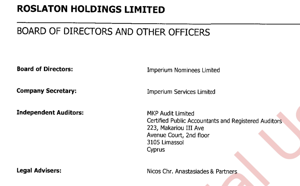 Сямейныя кампаніі-правайдары экс-прэзідэнта Кіпра абслугоўвалі таксама фірму Roslaton Holdings Limited, якая да 2019 году валодала доляй у менскім казіно «Шангры Ла». У справаздачы для кіпрскіх уладаў Roslaton Holdings Limited у якасці звязанай кампаніі ўказвала эмірацкую фірму Petrotrade, якая належыць сыну «гаманца» Лукашэнкі Аляксея Алексіна Дзмітрыю. [*] [*] [*]