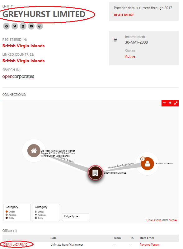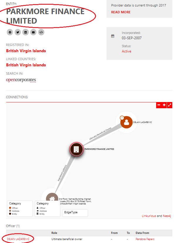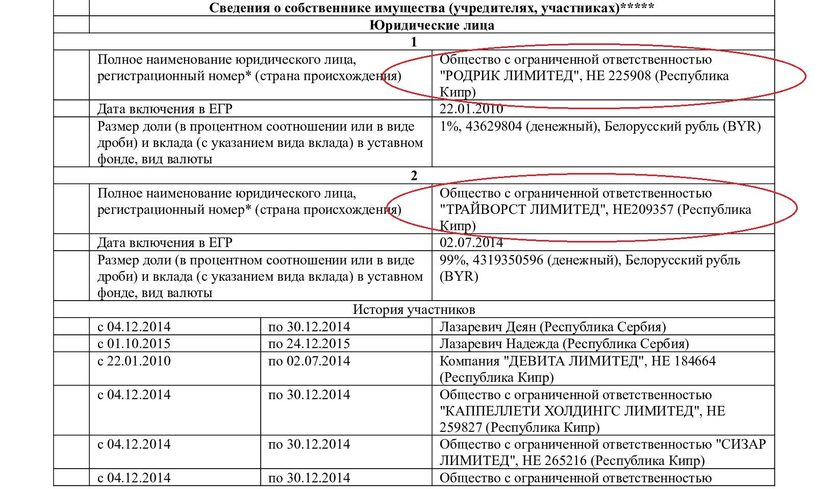 Нам у рукі патрапілі ўнутраныя дакументы афшорных фірмаў, якія Дэян Лазаравіч выкарыстоўвае для ўладання сямейнымі кватэрамі. Тыя дакументы сведчаць, што спадар Лазарэвіч з’яўляецца палітычна ўплывовай асобай, што паводле міжнародных стандартаў патэнцыйна можа быць карупцыянерам у сілу свайго становішча і ўплыву.