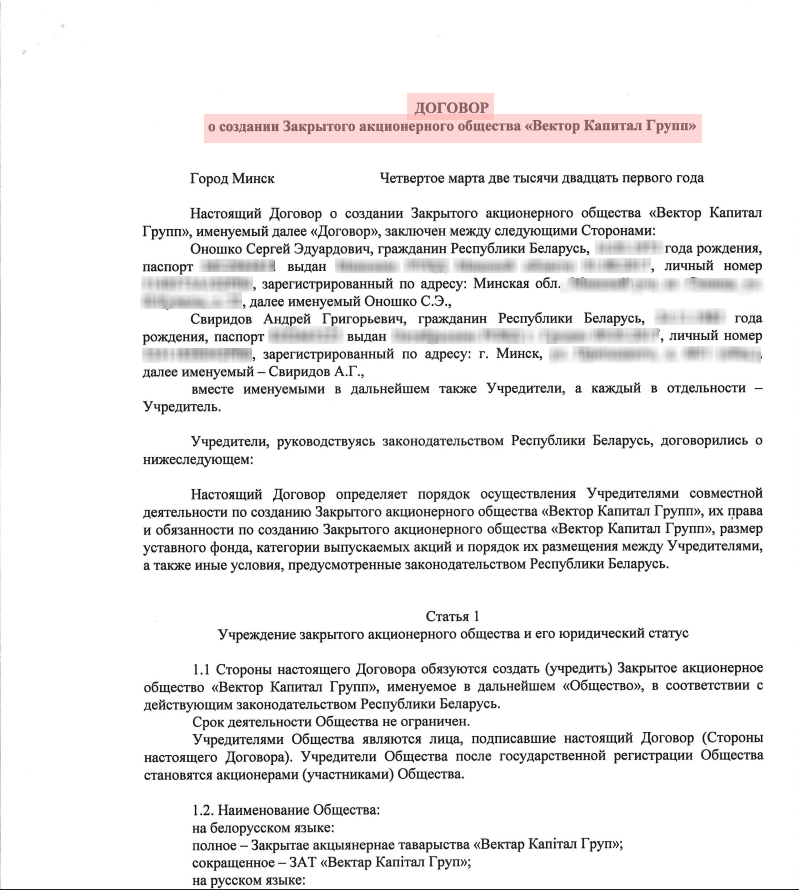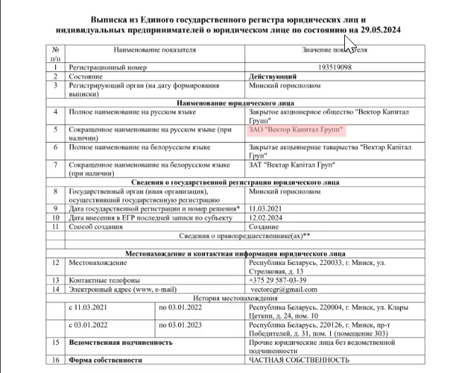 Андрэй Свірыдаў таксама з’яўляецца сузаснавальнікам і да лютага 2024 года дырэктарам новай ценявой бізнес-імперыі Шэймана — ЗАТ «Вектар Капітал Груп». [*] [*] [*]