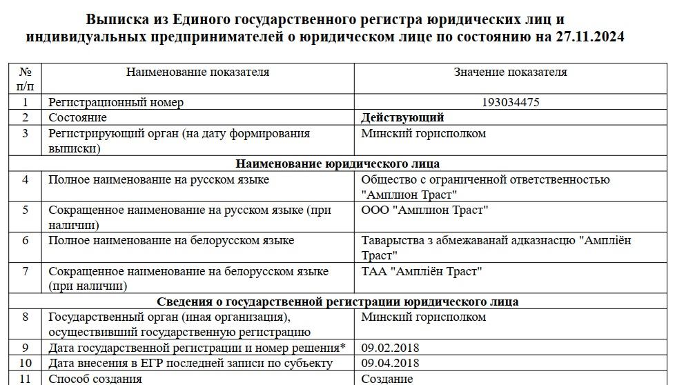 The BIC discovered that Krystsina Bazyleva was a member of the board of several companies registered in Latvia, including Amplion Trust, a namesake of the Belarusian Amplion Trust. The owners list of another Latvia company — Iskra Trust — features Krystsina Bazyleva.