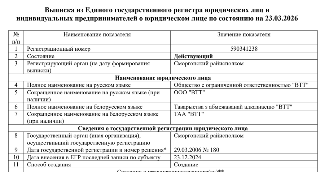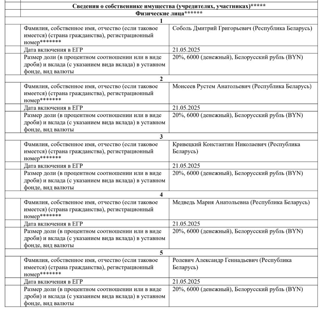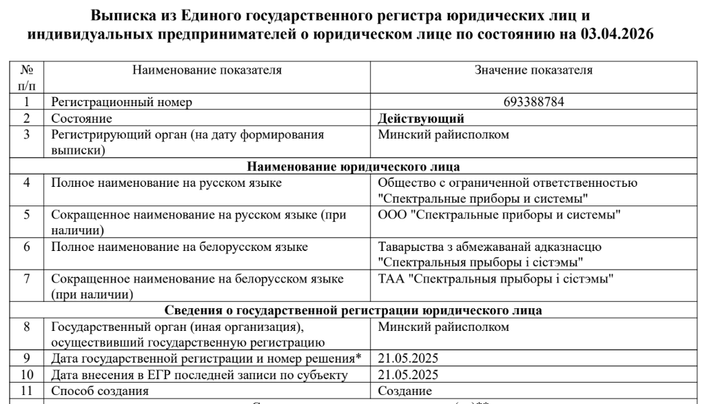 In 2025, Ralevich and his partners registered TAA Spektralnyja Prybory i Sistemy in the Minsk District. One of the new company’s co-owners is Rustem Maiseyeu, a co-owner of VTT. At the time of publication, the company did not have its own website or email address. According to the state registry, the company’s activity is the production of optical devices. [*] [*]