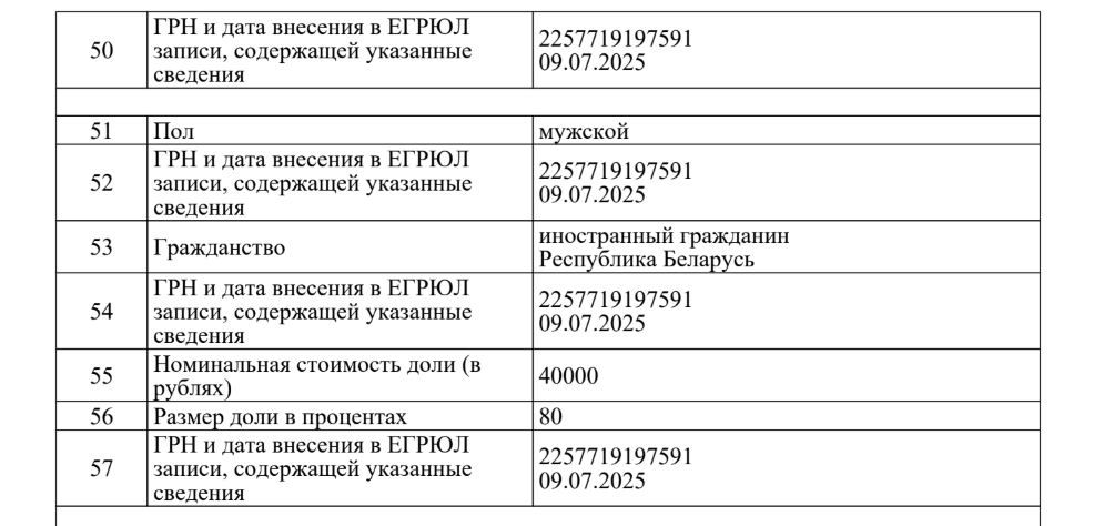 Компания «Астрата» с 9 июля 2025 года на 80% принадлежит фигуранту нескольких наших расследований Андрею Свиридову. [*] [*] [*] Этот гражданин Беларуси с 2019 по 2021 годы был заместителем тогдашнего управляющего делами Александра Лукашенко — Виктора Шеймана. Оставшейся пятой частью «Астраты» на момент выхода материала владела крымчанка с российским паспортом Екатерина Корниенко. До середины 2025-го фирма ей принадлежала целиком. Связь Корниенко и Свиридова прослеживается и через другую компанию. С марта 2022 года Корниенко занимала должность директора ООО «ПИК», которым с апреля 2019-го по октябрь 2022-го владела кипрская компания Rostumel Holding Limited (далее — Rostumel). [*] [*] [*] В последней, как указано в доверенности, на июнь 2024-го финансовым директором числился Свиридов. [*]