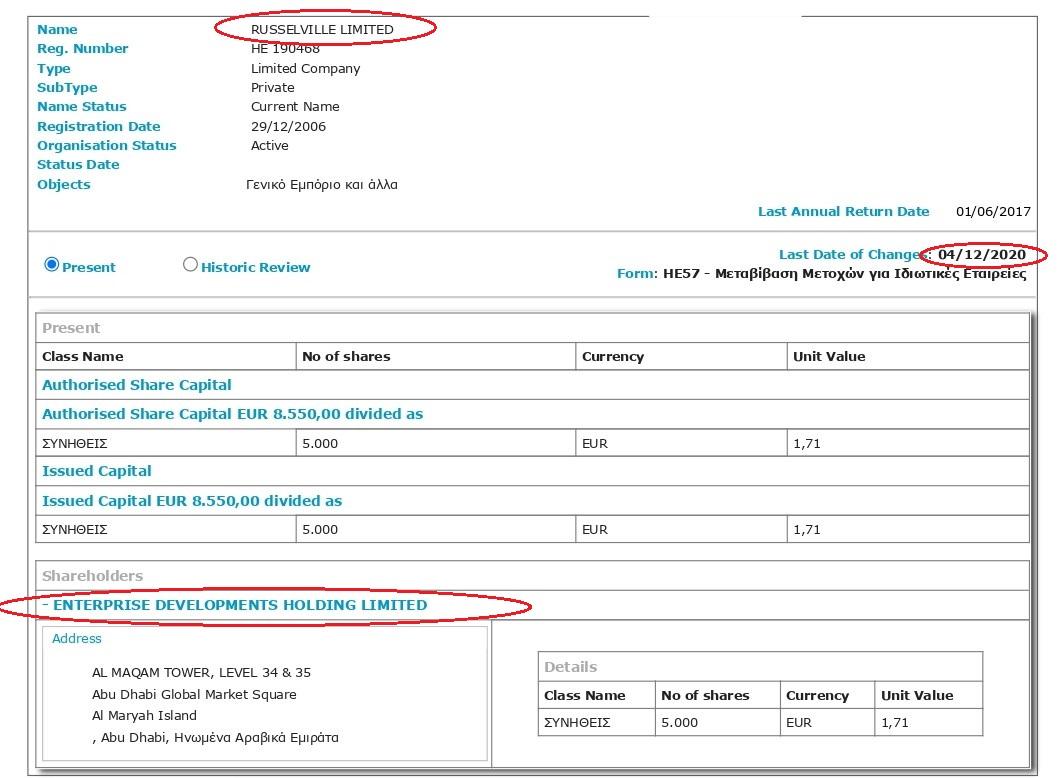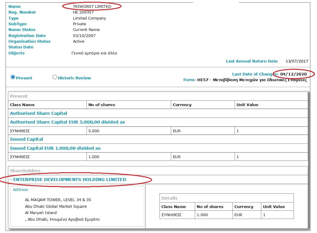 Во-вторых, буквально за две недели до введения санкций Dana Holdings продала перечисленные киприотские фирмы эмиратской компании Enterprise Developments Holding.